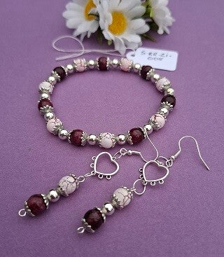 Elke set is met zorg samengesteld en uniek in zijn soort. Wordt geleverd als complete set (armband + oorbellen).