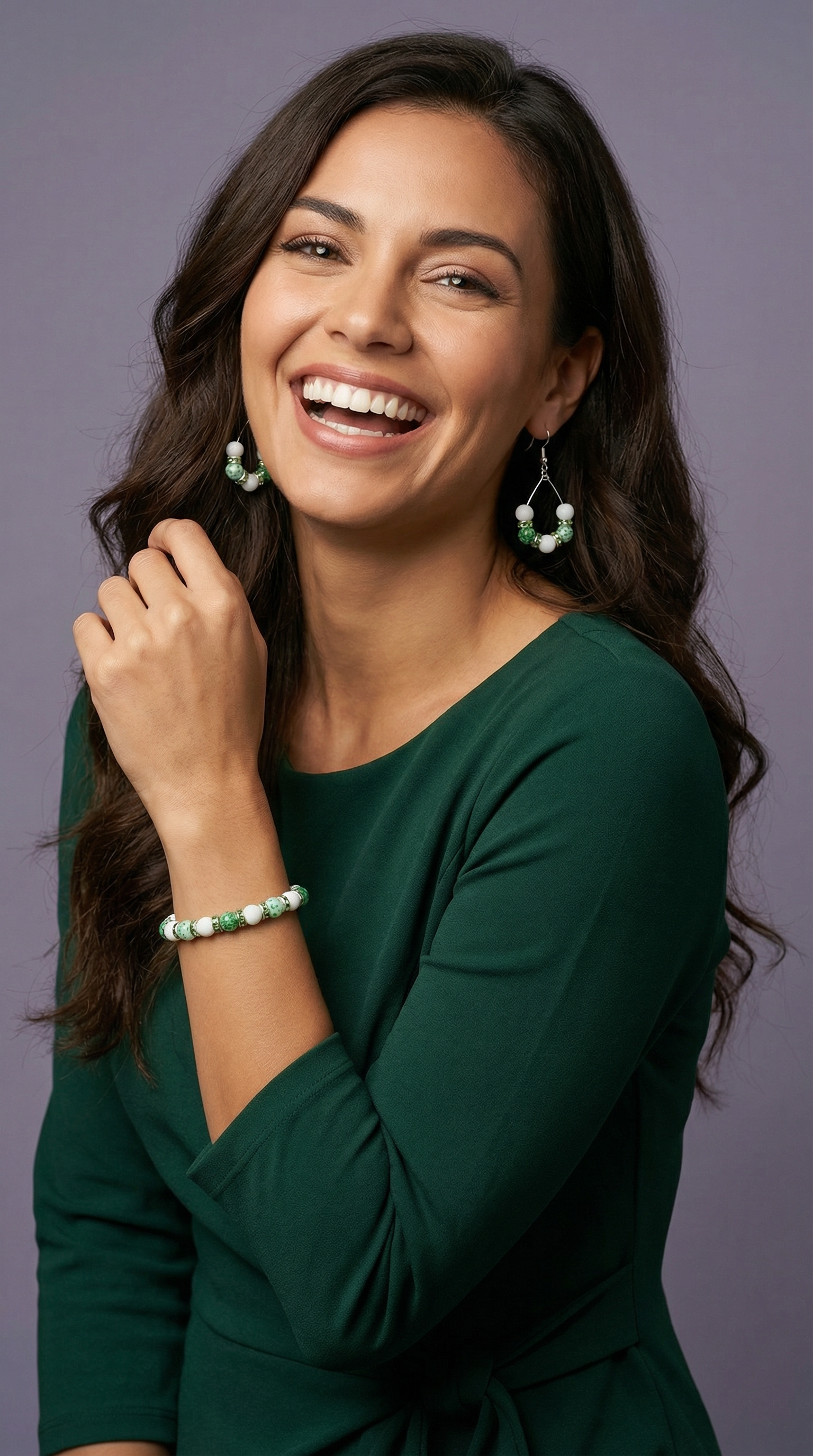 Frisse en natuurlijke set in groene marmer kralen en witte kraal met lichtgroene spacer.