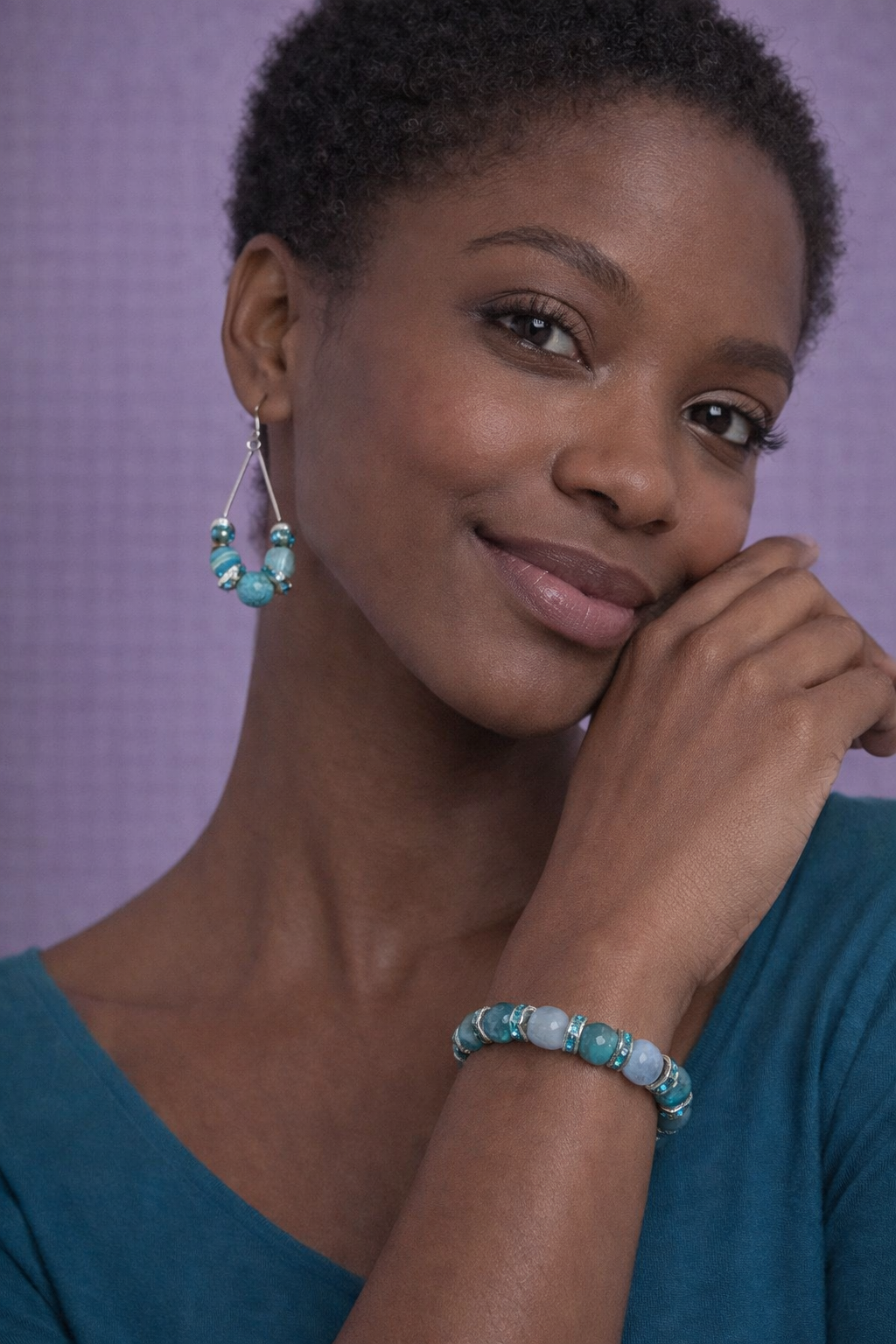 Tijdloze set in licht blauwe kralen en blauwe spacers.