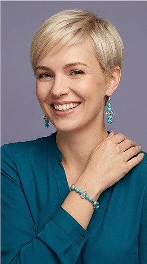 Sierlijke set in blauwe marmerkraal met zilverkleurige Wolk bedel.