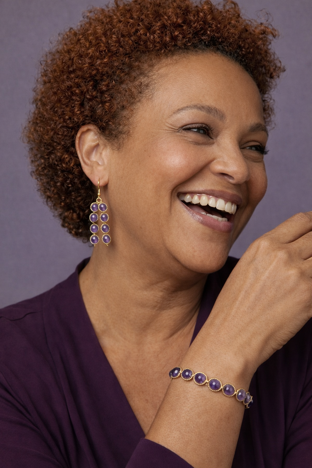 π Lila en paars gemêleerde kralen in goudkleurige zettingen zorgen voor een luxe uitstraling.