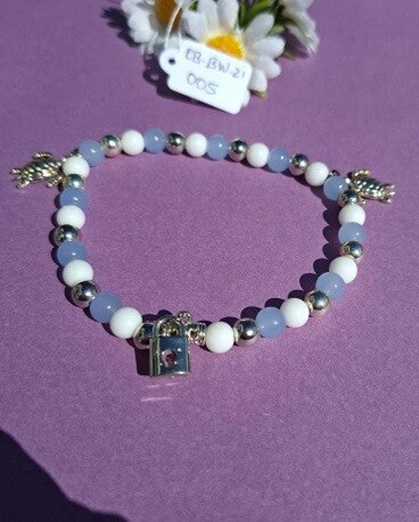 π Blauw-witte enkelband β met slotje en zilverkleurige details