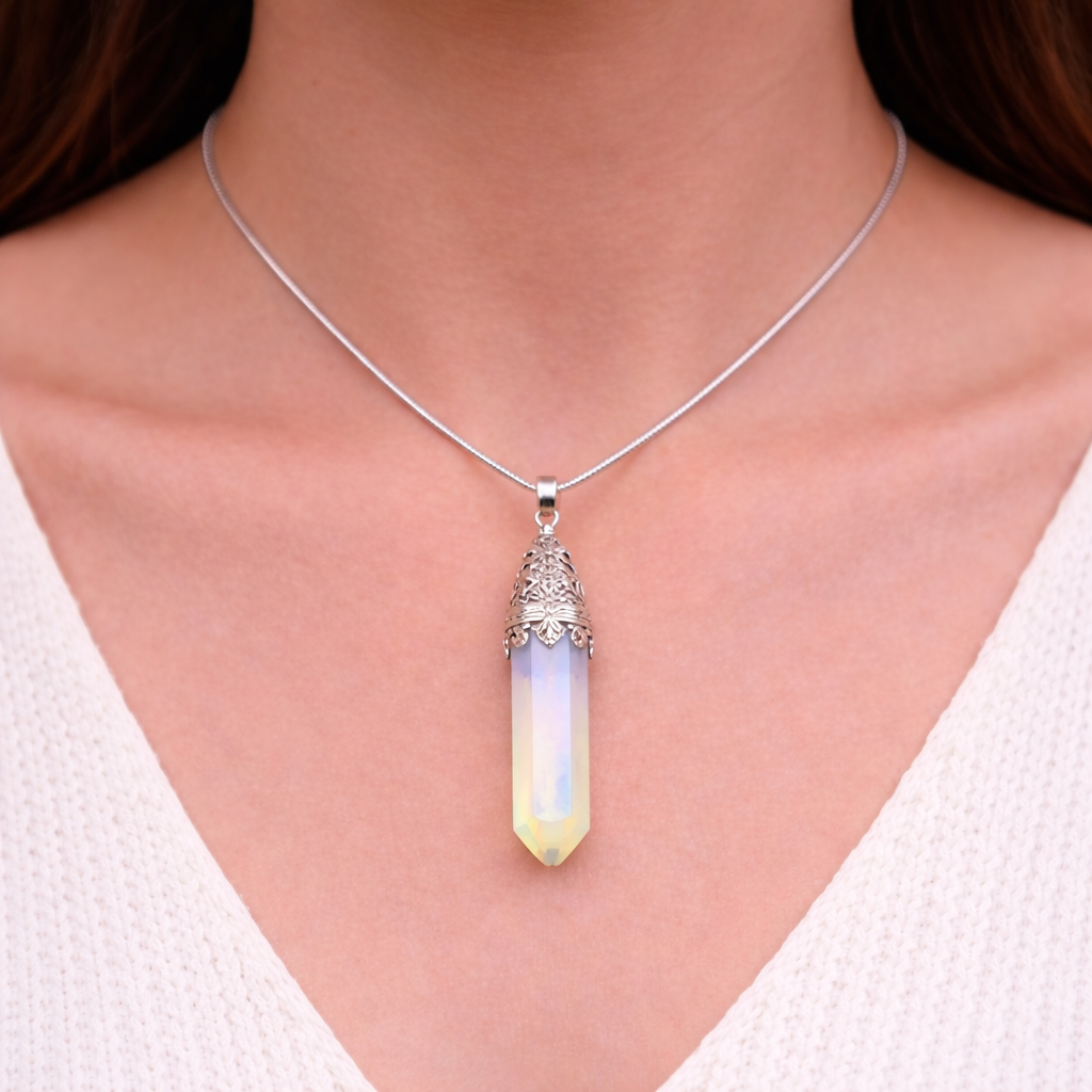 Deze verfijnde hanger is gemaakt van een natuurlijke edelsteen in een stijlvolle puntvorm.