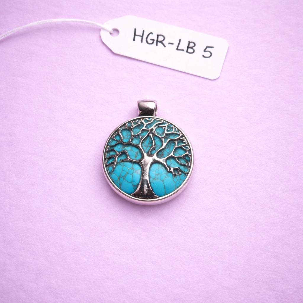 💜 Levensboom hanger – turquoise met zilverkleurige kap