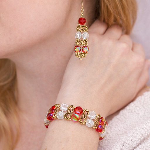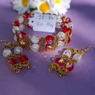 π Rode en witte kralen met goudkleurige en sierlijke accenten.