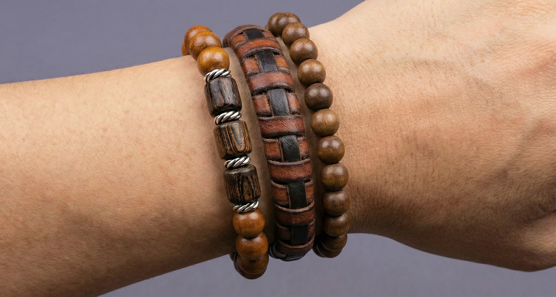 π€ Bruine tinten met een warme, robuuste uitstraling. π€ Mix van hout en kralen met een stoer karakter.